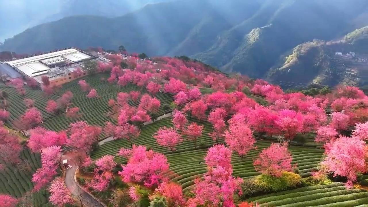 云南大理南涧彝族自治县的无量山深处,上万株冬樱花正值绽放期,吸引了全国各地的游客和摄影爱好者前来赏花。