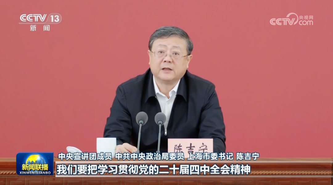 同日,中央宣讲团成员、中共中央政治局委员、上海市委书记陈吉宁在上海作宣讲报告。