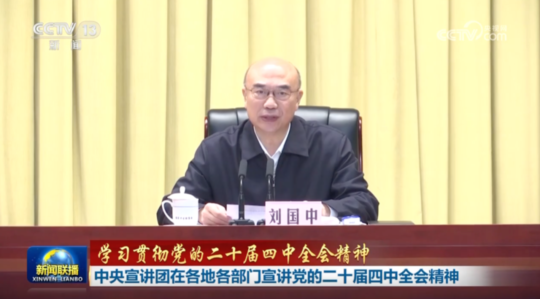 10月30日,《新闻联播》报道,中央宣讲团成员、中共中央政治局委员、国务院副总理刘国中在国家卫生健康委宣讲党的二十届四中全会精神。