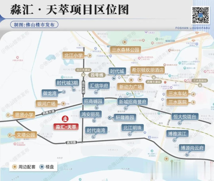 从地段来看,坐落于三水北江新区凤凰公园旁,紧邻地铁口,处于片区核心位置,周边生态资源与交通配套兼具。