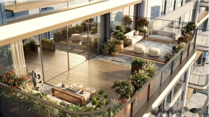 从产品基础指标看,淼汇天萃拥有四代宅的核心要素:南北双露台、挑空6米的空中庭院,实现“家家有花园,户户有庭院”的居住体验。