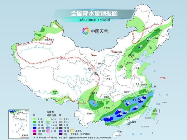昨天,南方新一轮较强降雨来袭,并伴强对流,同时北方部分地区也出现了雨雪天气。监测显示,贵州东部、湖南、江西中北部、福建中北部、浙江南部及甘肃东部、宁夏南部、陕西中北部等地部分地区出现中雨或大雨,局地暴雨,福建福州和三明、湖南湘西局地大暴雨,福建中部、贵州东部等局地出现雷暴大风,福建局地出现冰雹;青藏高原东部部分地区出现小到中雪或雨夹雪,局地大雪,青海海东局地暴雪。
