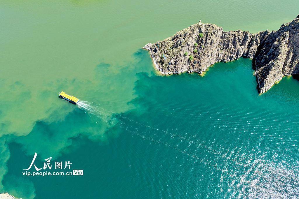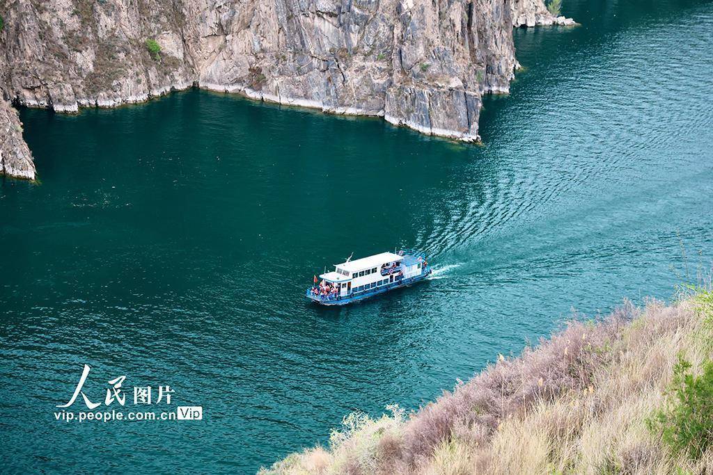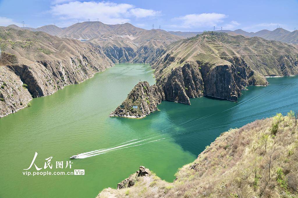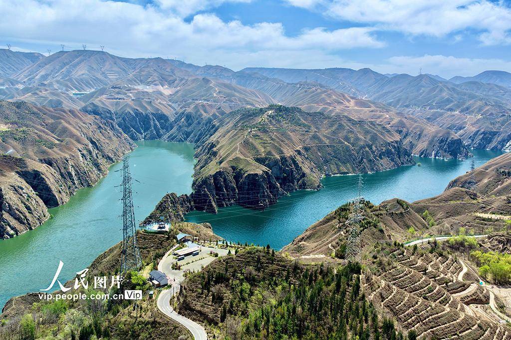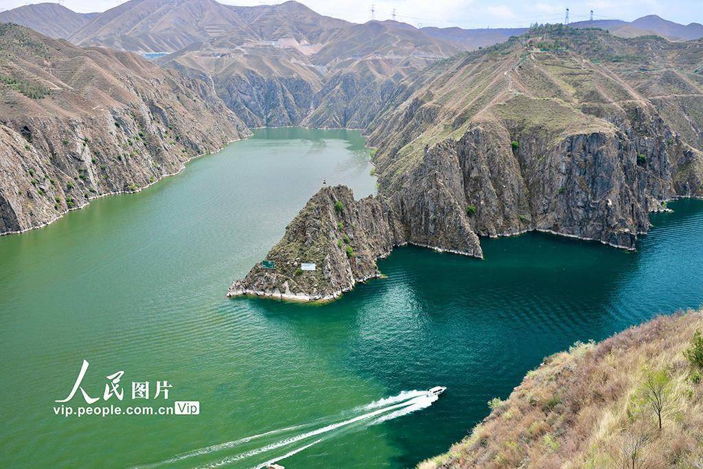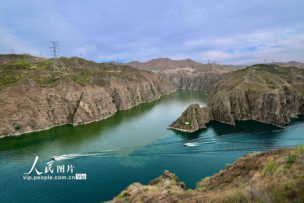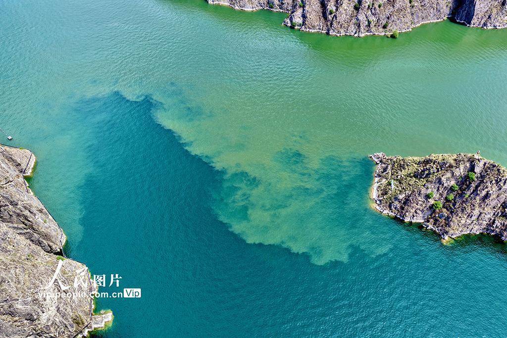 2026年4月23日,甘肃省临夏回族自治州永靖县刘家峡,黄河与洮河交汇相融,一清一浊界限分明,形成独具特色的高原峡谷自然景观,吸引各地游客前来观光。苏容摄(人民图片网)