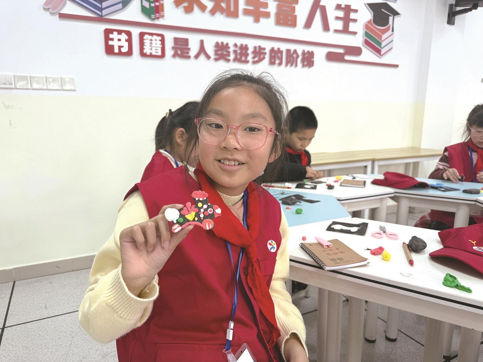 刚踏入活动现场,一排排黑底彩纹的泥泥狗泥塑就牢牢抓住了我的目光。老师告诉我们,泥泥狗有着数千年的悠久历史,以古朴的黑色为底色,搭配红、黄、绿等鲜亮色彩,灵动又别致,宛如从远古走来的小精灵。知识问答环节更是热闹,不少低年级小记者踊跃举手,分享泥泥狗与伏羲女娲的传说、不同造型的美好寓意,让我收获满满,深深折服于传统文化的魅力。